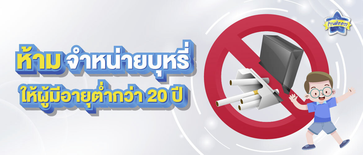 ห้ามขายบุหรี่ให้กับผู้มีอายุต่ำกว่า 20 ปี และห้ามใช้ จ้าง วาน หรือยินยอมให้ผู้ที่มีอายุต่ำกว่า 18 ปีขายบุหรี่